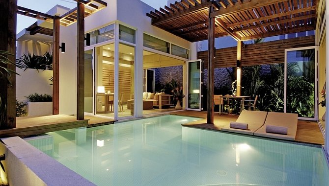 Pool-Villa (OU): 151-200 qm, 1 Schlafzimmer, Erdgeschoss, Nichtraucher, separater Wohnraum, Schreibtisch, Doppelbett (Kingsize), Sofabett, 1 Bad, Dusche, Außendusche, separates WC, Bademantel, Badeslipper, Haartrockner, Klimaanlage, individuell regulierbar, ca. 01.01.-31.12., Minibar kostenpflichtig, Safe, Bügelbrett, Bügeleisen, 1 TV (Sat-TV, landestypisches Programm, Flachbildschirm), DVD-Player, iPod-Dockingstation, Telefon, WLAN, Kaffee/Tee, Terrasse (möbliert), Privatpool, Whirlpool, Bettwäschewechsel (3 x wöchentlich), Handtuchwechsel (täglich)