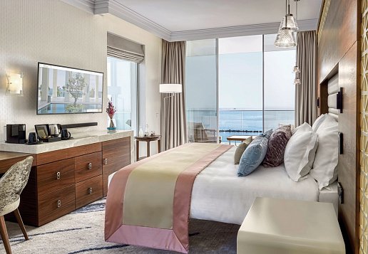 36-40 qm, Juniorsuite, Meerblick, Sitzecke, Couch, Doppelbett (Kingsize), Dusche, Badewanne, Regendusche, WC, Bademantel, Badeslipper, Haartrockner, Klimaanlage, Heizung, Minibar kostenpflichtig, Safe, Bügelbrett, Bügeleisen, TV (Sat-TV, Flachbildschirm), Wasserkocher, Espressomaschine, Kaffee/Tee, Balkon oder Terrasse (möbliert)