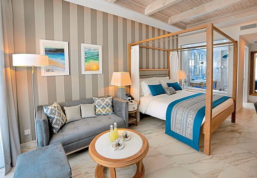 31-35 qm, Doppel, Superior, Meerblick, Sitzecke, Couch, Doppelbett (Kingsize), Dusche, Badewanne, Regendusche, WC, Bademantel, Badeslipper, Haartrockner, Klimaanlage, Heizung, Minibar kostenpflichtig, Safe, Bügelbrett, Bügeleisen, TV, Wasserkocher, Espressomaschine, Kaffee/Tee, Terrasse (möbliert), Plunge Pool