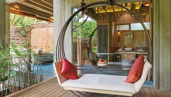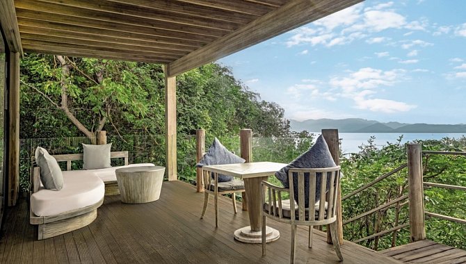 81-90 qm, Villa, Buchtblick (direkt), Schreibtisch, Doppelbett (Kingsize), Sofabett, Freiluftbadezimmer, Außenbadewanne, Regendusche, Bademantel, Haartrockner, Klimaanlage, Minibar kostenpflichtig, Safe (kostenpflichtig), TV, Espressomaschine, Kaffee/Tee, Kühlschrank, Terrasse (möbliert), Privatpool
