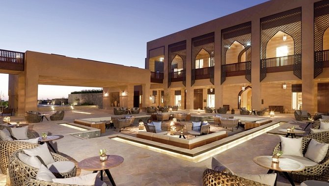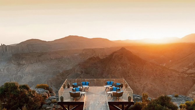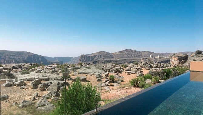 Die spektakuläre Lage an einem Vorsprung zum Canyon in den Al Hajar Bergen in 2.000 m Höhe und das stets kühlere Klima als im Rest des Landes machen dieses Resort so einzigartig.