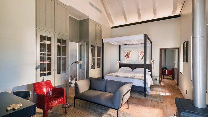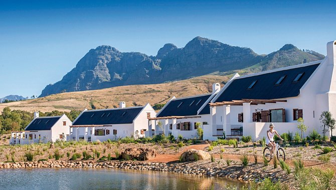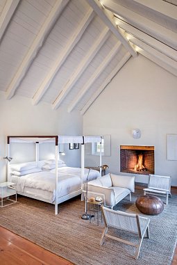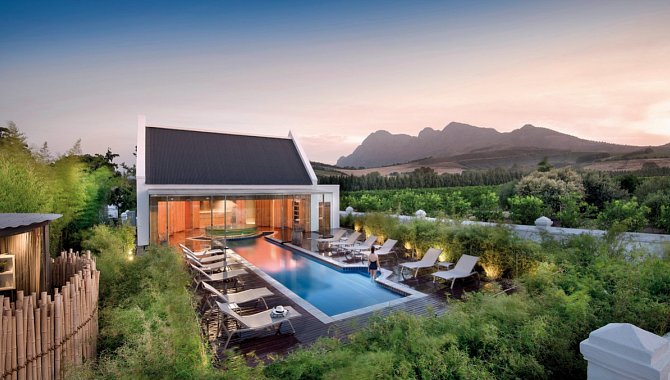 Die 13 Chalets und 9 Suiten sind ausgestattet mit Bad, separater Dusche und Badewanne, Fußbodenheizung, großzügigen Sitzbereichen und Kamin, mit Außenbereich mit Blick auf den Garten oder die Weinfarm.