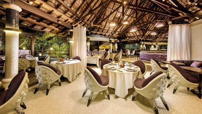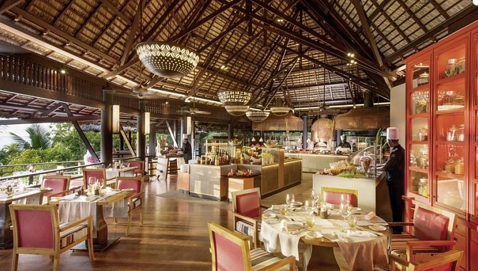 Das Hauptrestaurant The Legend bietet Frühstücks- und Dinnerbuffet inkl. indischen Spezialitäten. Mittags leichte Küche, Burger und Pasta. Zum Dinner verwöhnt The Diva mit französisch inspirierten Menüs und mit “Golfer’s Lunch” zum Mittag. The Nest serviert à la carte Seafood, kreolische Gerichte und Spezialitäten des Indischen Ozeans. Jedes Restaurant verfügt über eine Bar. Zudem Poolbar und Takamaka an der Petit Anse Kerlan für Mittagssnacks.