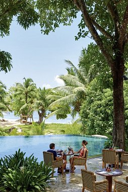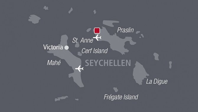 - Der Flughafen Praslin ist ca. 10 Minuten, Mahé ca. 20 Minuten per Helikopter entfernt