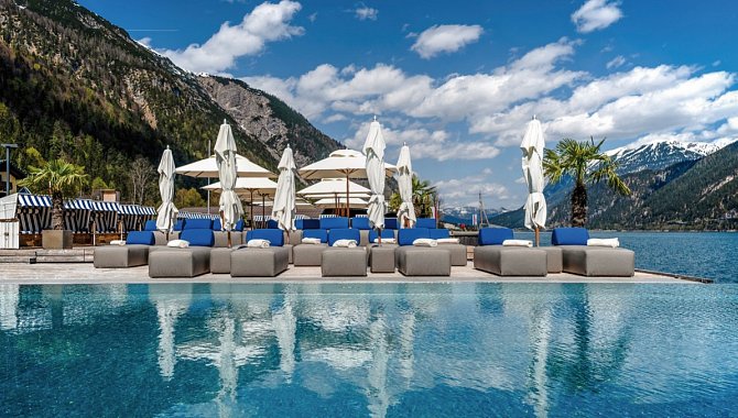 à-la-carte Restaurant, Café, Bar, Hallenbad, Infinity-Pool am See, Sauna, Spa, Sonnenterrasse