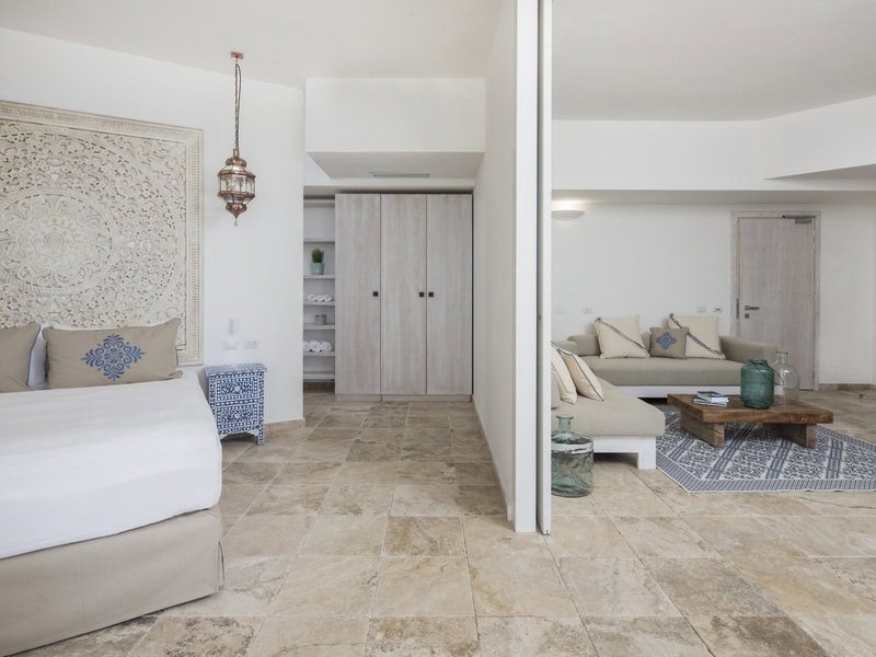 Meerblick-Junior-Suiten (KUM): 31-35 qm, Meerblick, optisch getrennter Wohn-/Schlafbereich, Doppelbett, 2 Sofabetten, 1 Bad, Dusche, WC, Bademantel (kostenfrei), Badeslipper, Haartrockner, Klimaanlage kostenfrei, individuell regulierbar, Minibar kostenpflichtig, Safe (kostenfrei), 1 TV (Sat-TV, Flachbildschirm), Telefon, WLAN, kostenfrei, Balkon oder Terrasse