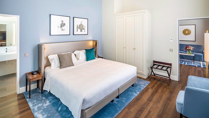 31-35 qm, Suite, Deluxe, 1 separates Schlafzimmer, separater Wohnraum, Sitzecke, Schreibtisch, Dusche oder Badewanne, Regendusche, WC, Bademantel, Haartrockner, Klimaanlage, Minibar, Auffüllung bei Anreise, Softdrinks, Mineralwasser, Safe, Bügelbrett, Bügeleisen, TV, WLAN, Kochnische, Essecke, Wasserkocher, Espressomaschine, Kaffee/Tee
