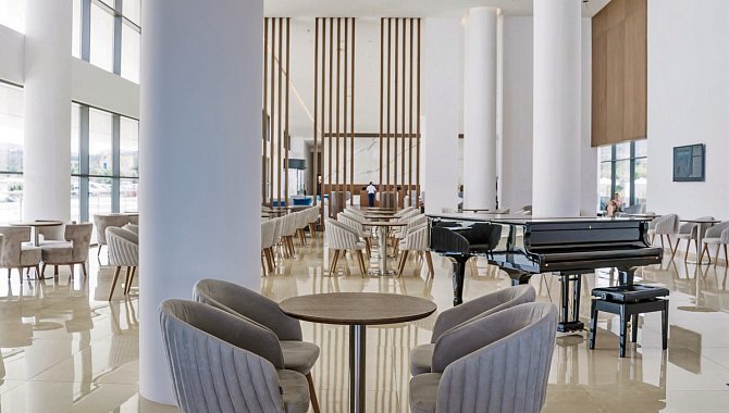 Juniorsuite Meerblick: 36-40 qm, Juniorsuite, Meerblick, 1 Bad, Dusche, WC, Bademantel, Badeslipper, Haartrockner, Kosmetikspiegel, Klimaanlage, individuell regulierbar, Safe, 1 TV (Sat-TV, Flachbildschirm), Telefon, WLAN, Espressomaschine, Kaffee/Tee, Kühlschrank, Terrasse