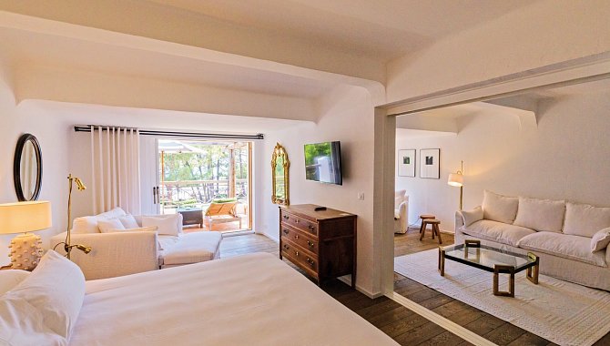 Suite: 51-60 qm, optisch getrennter Wohn-/Schlafbereich, Sitzecke, Doppelbettcouch, Dusche, Badewanne, separates WC, Haartrockner, Klimaanlage, Minibar, Safe, TV, Telefon, WLAN, Balkon oder Terrasse (möbliert)