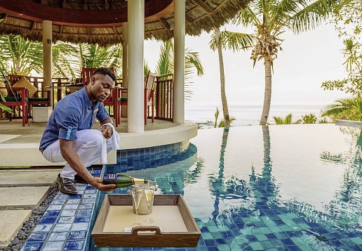 Hochzeitsreisende sowie Hochzeitsjubilare erhalten bei Ankunft eine Zimmerdekoration, 1 Kuchen und 1 Flasche Sekt/Wein. Während des Aufenthaltes 1 Barfuß-Dinner in der 4th Degree Beach Bar inklusive 1 Flasche Wein, sowie ein romantisches Sprudelbad in der Villa. Außerdem 20% Ermäßigung auf Spa-Anwendungen. Mindestaufenthalt 3 Nächte. Gültig bis 6 Monate nach dem Hochzeitstag bzw. 1 Monat vor/nach dem jeweiligen Jahrestag. Nicht gültig vom 24.12.-10.1. Nicht mit Sparvorteilen kombinierbar. Kinder im Zimmer der Eltern erlaubt. Bitte verwenden Sie die Unterbringung VHG (King Garden Villa), VHM (King Beachfront Villa), VH1 (King Sanctuary Poolvilla), VHO (King Deluxe Beachfront Poolvilla), VH2 (King Garden Oasis Poolvilla), VH3 (King Beachfront Villa with Plunge Pool).