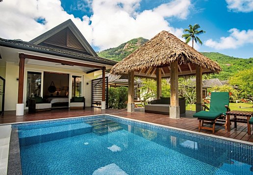 >200 qm, Villa, mit Verbindungstür, nebeneinander, Gartenblick, Dusche, Badewanne, Außendusche, Haartrockner, Klimaanlage, Minibar kostenpflichtig, Safe, Bügelbrett, Bügeleisen, TV, DVD-Player, Wasserkocher, Espressomaschine, Terrasse, Privatpool, bei Ankunft im Zimmer Wasser