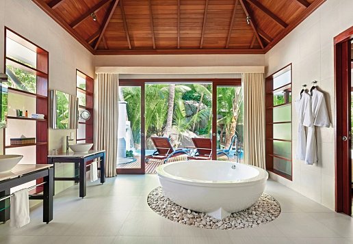 King Beachfront Villa with Plunge Pool (RA1) 101-120 qm, Strandlage, Meerblick, Dusche und Badewanne, Außendusche, Haartrockner, Klimaanlage, Minibar kostenpflichtig, Safe (kostenfrei), Bügelbrett, Bügeleisen, TV (Sat-TV, Flachbildschirm), DVD-Player, Telefon, Espressomaschine, Terrasse (direkter Strandzugang), Privatpool