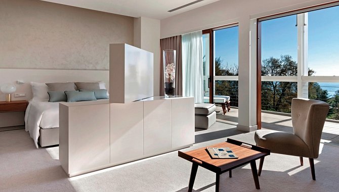 Uliveto Deluxe (DZX2): Doppelzimmer, Nichtraucherzimmer, Mindestalter im Zimmer: 0 Jahre. Gartenseite, Parkseite, Gartenblick, Parkblick, Blick auf olive grove, ca. 30 m², kombiniertes Wohn-/Schlafzimmer, Kaffee-/Teezubereiter, Minibar, Internet: WLAN/WiFi, Fernseher: Flatscreen, Sat-TV, Badewanne oder Dusche, WC, Bademantel, Slipper, Föhn