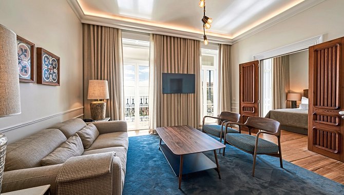 Artistic Suite: 61-70 qm, Meerblick (direkt), kombinierter Wohn-/Schlafraum, Twinbett, Dusche, Bademantel, Badeslipper, Haartrockner, Kosmetikspiegel, Klimaanlage, Heizung, Minibar, Auffüllung regelmäßig, Softdrinks, Wasser, Safe, TV (Smart-TV), Telefon, WLAN, Wasserkocher, Kaffeemaschine, Balkon (möbliert), Kopfkissen-Menü, bei Ankunft im Zimmer Obst, Wein