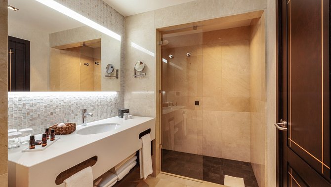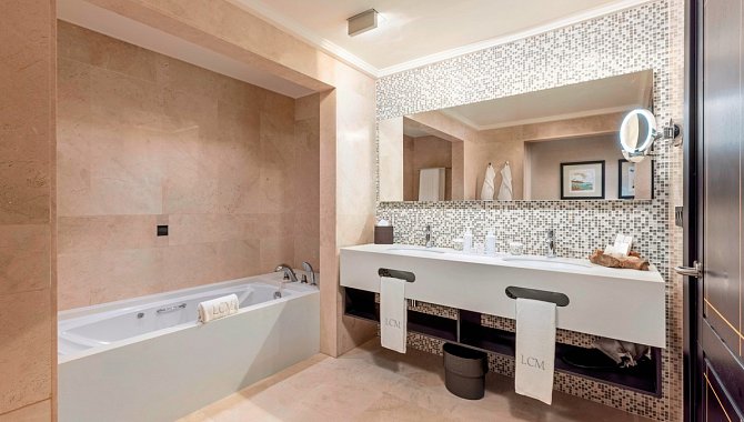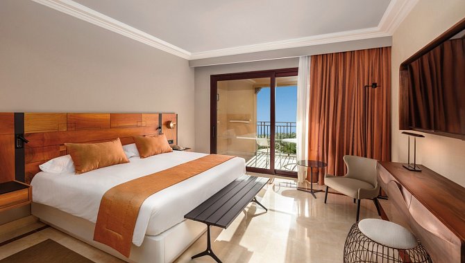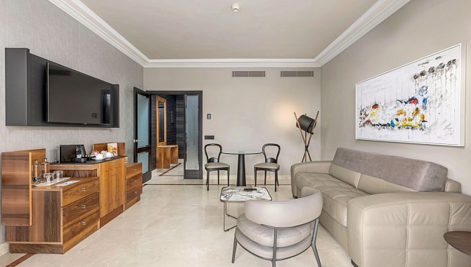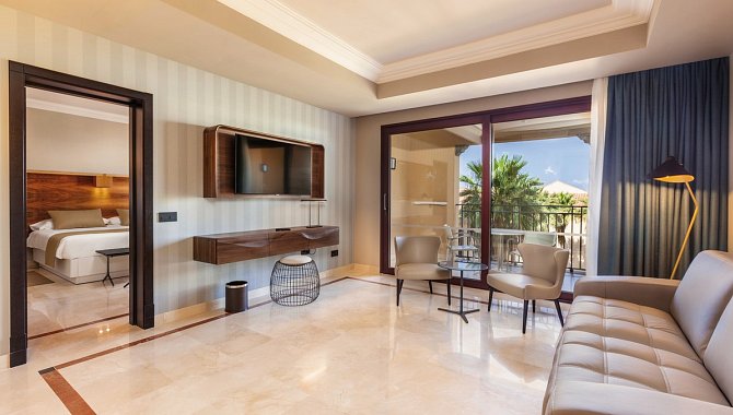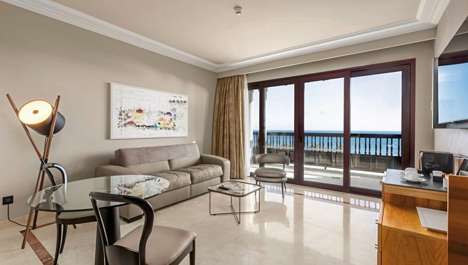 Suiten UNIQUE (SUM): 71-80 qm, Meerblick (direkt), renoviert (2020), separater Wohnraum, separates Schlafzimmer, Sitzecke, Doppelbett, Sofabett, Dusche, Badewanne, WC, Bademantel, Haartrockner, Kosmetikspiegel, Fliesen, Klimaanlage, zentral gesteuert, Minibar kostenpflichtig, Safe, 2 TVs (Sat-TV, Flachbildschirm), Telefon, Wasserkocher, Espressomaschine, Kaffee/Tee, Balkon oder Terrasse (möbliert), Kopfkissen-Menü, hochwertige Badartikel, bei Ankunft im Zimmer Wasser