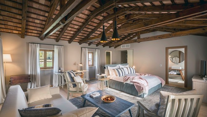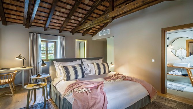 Superior & Vintage Room (6) ca. 28-42 qm: Komfortables Doppelzimmer mit Kingsize-Bett oder 2 Einzelbetten, Weinberg- und Poolblick.