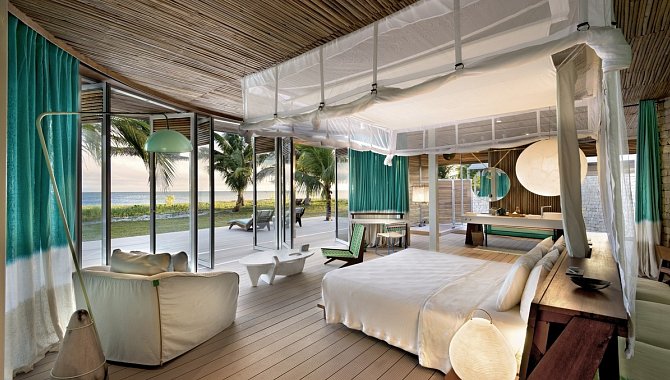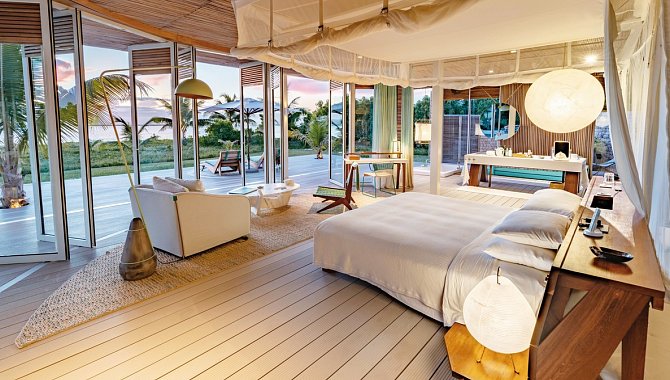 Das Resort umfasst nur 14 Villen, alle mit direkter Strandlage, privatem Pool und absoluter Privatsphäre. Design und Interieur der Villen sind inspiriert von der außergewöhnlich schönen Naturlandschaft der Insel – helle Farbtöne, türkise Farbkleckse und weite Fensterfronten lassen Räume und Natur eins werden. Besondere Akzente setzen dabei auch die handgefertigten Möbel und Textilien, die den Villen ein ganz besonderen Charme verleihen und nochmal die Schönheit des Landes einfangen. Zur Ausstattung der Villen gehören ein en-Suite Bad mit Innen- und Außendusche, eine großzügige Bibliothek mit Sitzgelegenheiten, Bar und Kichenette, komplett zu öffnende Panoramafenster, eine weitläufige Veranda mit privatem Pool und Blick auf den Ozean. Zudem steht jeder Villa rund um die Uhr ein Butler zur Verfügung.