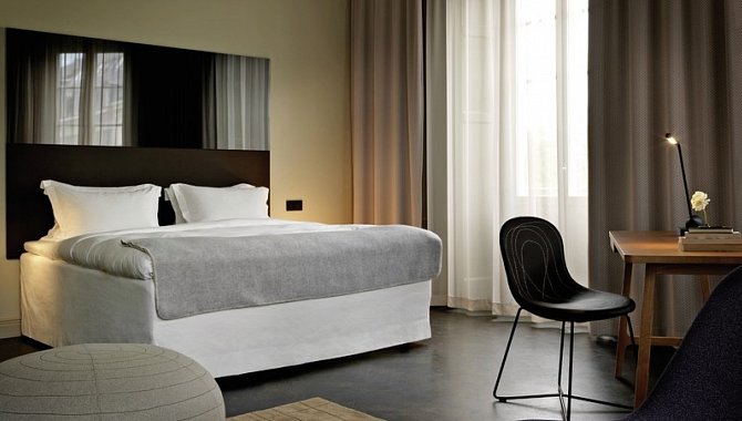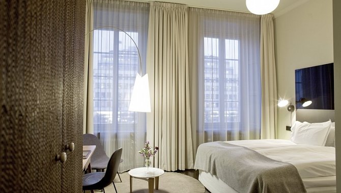 Deluxe: ca. 25 qm: Mit Sitzecke, separater Dusche und Badewanne, Blick auf den Norrmalmstorg-Platz.