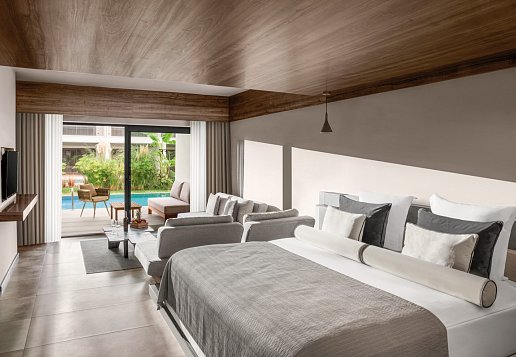 Familien-Suite-Large-Swim Up (FDS/FD4): 71-80 qm, Großraum, 2 Schlafzimmer, Dusche, WC, Haartrockner, Klimaanlage kostenfrei, Minibar kostenfrei, Auffüllung regelmäßig, Softdrinks, Bier, Wasser, Safe (kostenfrei), TV (Sat-TV), Telefon, Wasserkocher, Terrasse (direkter Poolzugang)