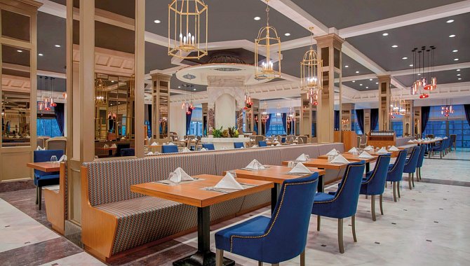 Alles inklusive: Frühstück (Buffet), Langschläferfrühstück, Mittagessen (Buffet), Abendessen (Buffet), Abendessen im à-la-carte-Restaurant (1x pro Woche in ausgewählten), Getränke kostenfrei (Softdrinks, Mineralwasser, Kaffee/Tee, Bier, lokale Getränke, lokale Spirituosen), Snacks (14:30-17 Uhr), Snacks (23-1 Uhr), Kaffee/Tee und Gebäck (14:30-17 Uhr), Eis, Getränke in der Minibar (Auffüllung täglich)