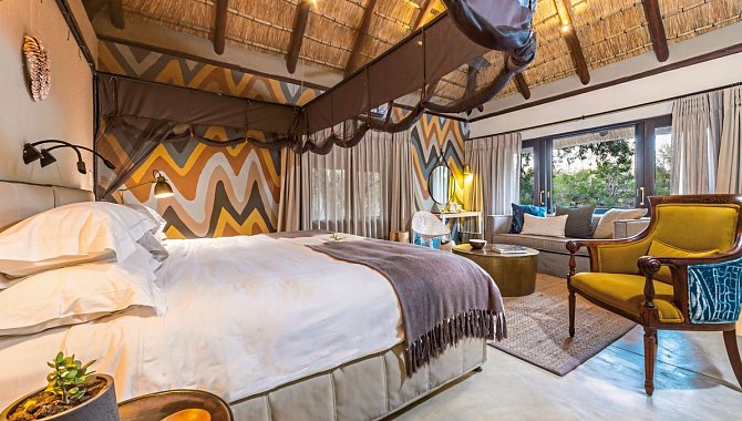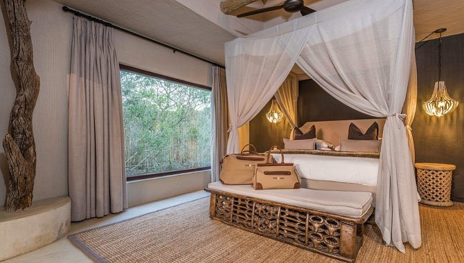 Das Flaggschiff der Sabi Sabi Lodges ist eine Unterkunft der besonderen Art – alle Suiten wurden in das Erdreich gebaut und geben den Gästen das Gefühl, der Natur nah zu sein. Die Wände wurden vorwiegend aus natürlichen Produkten gebaut und Holzskulpturen und Designermöbel geschmackvoll in die Einrichtung integriert. Alle 13 Suiten sind ausgestattet mit Bad, Bademantel, Föhn, Ventilator, Klimaanlage, Minibar, Safe, Kaffee-/Teezubereiter.