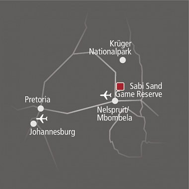 - Charterflüge ab Flughafen Johannesburg bis zur Landepiste von Sabi Sabi Airstrip mit Federal Air (ca. 90 Minuten), anschließend PKW-Transfer von 10 Minuten zur Lodge