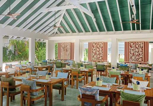 All Inclusive: Frühstück (Buffet), Mittagessen (Buffet), Abendessen (Buffet), Getränke kostenfrei (Softdrinks, Mineralwasser, Kaffee/Tee, Bier, Säfte, Mocktails, Hauswein, Cocktails, Sekt, Spirituosen, 9-1 Uhr), Snacks, Minibar (Auffüllung täglich, Softdrinks, Mineralwasser, Bier), ab 4 Nächten Aufenthalt 1 Abendessen in einem der beiden à-la-carte-Restaurants, ab 8 Nächten Aufenthalt 2 Abendessen und ab 14 Nächten Aufenthalt 3 Abendessen im à-la-carte-Restaurant, 2 Bootsausflüge pro Gast/Aufenthalt (traditionelles Angeln am Morgen und Dhoni-Fahrt zum Sonnenuntergang)