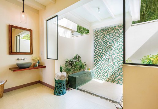 Deluxe Beach Villa: 51-60 qm, Villa, Deluxe, Strandlage, Meerblick, nach oben halb offenes Bad, Dusche, WC, Bademantel, Haartrockner, Klimaanlage, Ventilator, Minibar, Auffüllung täglich, Softdrinks, Mineralwasser, Safe, TV, WLAN, Wasserkocher, Kaffee/Tee, Terrasse (möbliert), direkter Strandzugang, in einer Doppelhaushälfte