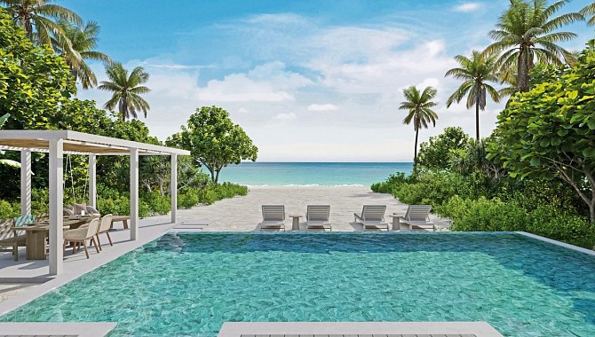 Three Bedroom Beach Villa Suite with Pool: >200 qm, Einzelhaus, Strandlage, Meerblick, 3 separate Schlafzimmer, Badewanne, Außendusche, WC, Haartrockner, Holzboden, Klimaanlage, Ventilator, Minibar, Safe, TV, WLAN, Wasserkocher, Kaffee/Tee, Terrasse (möbliert), direkter Strandzugang, Privatpool
