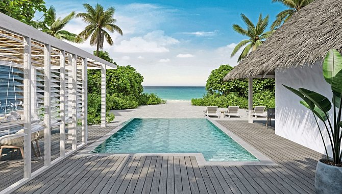 Deluxe Beach Villa Suite with Pool: 151-200 qm, Einzelhaus, Strandlage, Meerblick, 1 separates Schlafzimmer, Badewanne, Außendusche, WC, Haartrockner, Holzboden, Klimaanlage, Ventilator, Minibar, Safe, TV, WLAN, Wasserkocher, Kaffee/Tee, Terrasse (möbliert), direkter Strandzugang, Privatpool
