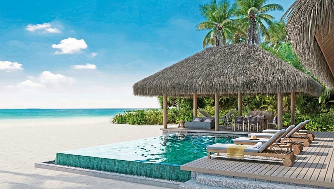 Two Bedroom Beach Villa Suite with Pool: >200 qm, Einzelhaus, Strandlage, Meerblick, 2 separate Schlafzimmer, Badewanne, Außendusche, WC, Haartrockner, Holzboden, Klimaanlage, Ventilator, Minibar, Safe, TV, WLAN, Wasserkocher, Kaffee/Tee, Terrasse (möbliert), direkter Strandzugang, Privatpool