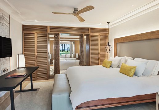 Frühstück (Buffet), Mittagessen (à la carte), Abendessen (Buffet), Abendessen im à-la-carte-Restaurant, Getränke kostenfrei (9-0 Uhr), Snacks, Kaffee/Tee und Gebäck, Getränke in der Minibar, Beach-Trolly-Service mit Getränken und Snacks, täglich Greenfee auf dem Tamarina Golf Course inkl. Transfer, täglich Bootstransfer zur Ile aux Cerfs