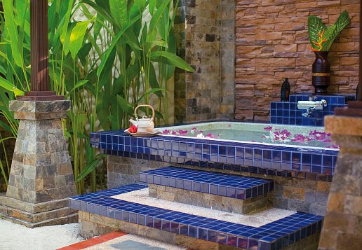 Grand Beach Villa: 71-80 qm, Einzelhaus, Strandlage, Meerblick, nach oben halb offenes Bad, Dusche, Badewanne, Außendusche, WC, Haartrockner, Klimaanlage, Ventilator, Minibar kostenpflichtig, Safe, TV, WLAN, Wasserkocher, Espressomaschine, Kaffee/Tee, Terrasse (möbliert), direkter Strandzugang