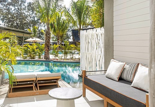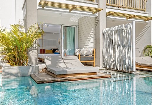 Couple Swim Up room: ca. 31 m², liegt im Erdgeschoss, private Terrasse mit großem Sonnenbett, direkter Zugang zum zweiten Swimmingpool