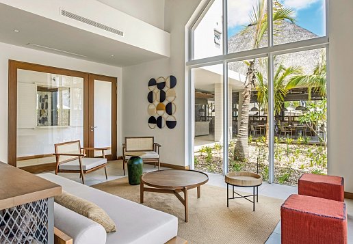 3 verschiedene Restaurants: typische mauritische Küche Streetfoodkiosk mit typisch mauritischem Streetfood, Bars, Souvenirshop: 100% in Mauritius gefertigte Produkte, 2 Pools, Gartenanlage