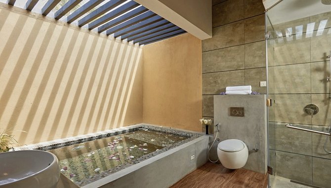 Luxury-Villen mit Pool (WA): 36-40 qm, Meerseite, Meerblick, zum Teil, 1 Bad, nach oben halb offenes Bad, Dusche, Waschtisch, WC, Haartrockner, Klimaanlage kostenfrei, Ventilator, Minibar kostenpflichtig, Safe (kostenfrei), Bügelbrett, Bügeleisen, 1 TV (Sat-TV, Flachbildschirm), Telefon, Wasserkocher, Kaffee/Tee, Terrasse (möbliert), Privatpool