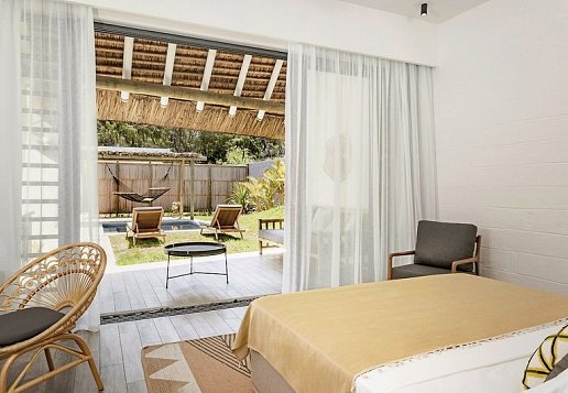 Villa: 60qm, Privatpool und Garten (16qm), Telefon, TV, WLAN, Mini-Bar, Tee- und Kaffeebar, elektronischer Safe, AC, Haartrockner, Badezimmer mit Dusche und separater Toilette