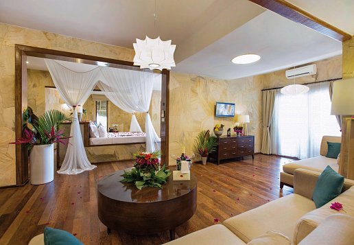 Deluxe Garden Bungalow with Partial Seaview: 101-120 qm, Meerblick (seitlich), 1 separates Schlafzimmer, Dusche, Badewanne, WC, Bademantel, Haartrockner, Klimaanlage, Minibar, Safe, TV, WLAN, Espressomaschine, Kaffee/Tee, Terrasse (möbliert)