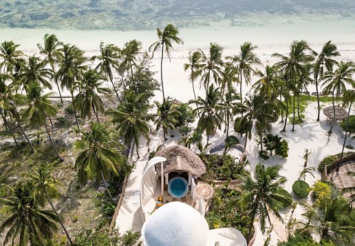 Kimwondo Villa: ca. 50 qm: Unten Schlafzimmer, oben Lounge und Rooftop Pool.